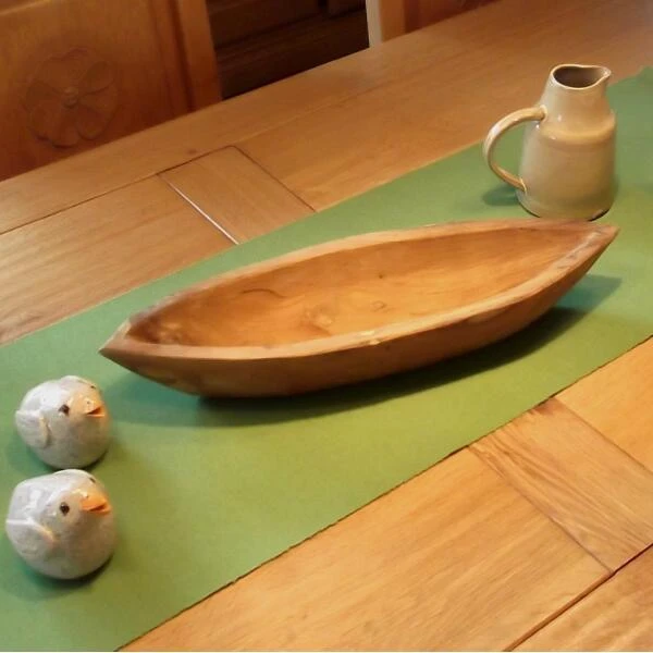 De schaal heeft de vorm van een boot en is gemaakt uit tropisch hardhout. Elke schaal is uniek van kleur en houttekening wat de schaal nog mooier maakt.
