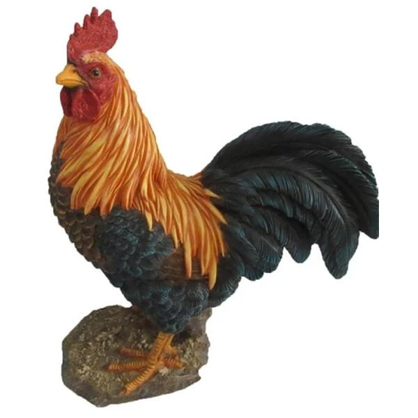 Deze vrolijke haan kleurt meteen jouw tuin, terras of balkon helemaal op. Dit prachtig tuinbeeld is vervaardigd uit polystone en geschilderd in heldere kleuren. Dit beeld is een prachtige weergave van een volwassen haan, uitgewerkt tot in het kleinste detail, de pluimen, ogen, neus, bek, oren, poten, … zijn zeer mooi voorgesteld.
