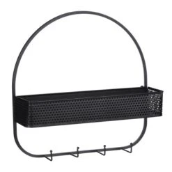 Het wandrek Fiori is ideaal voor in kleine ruimtes zoals in de badkamer, keuken, toilet, of hal. Voorzien van een handig opbergbakje en vier haken om verschillende kleine spullen die je dagelijks nodig hebt netjes op te bergen: sleutels, diverse kruiden, tandenborstels, de vaatddoek, handdoeken,… Bijzonder praktisch dus!