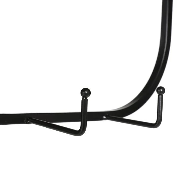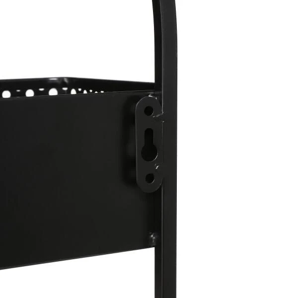 Het rek heeft een moderne look en is vervaardigd uit metaal afgewerkt met een zwarte coating. Het rek is niet alleen praktisch maar door zijn unieke vorm, oogt het ook nog eens heel mooi in het interieur.
