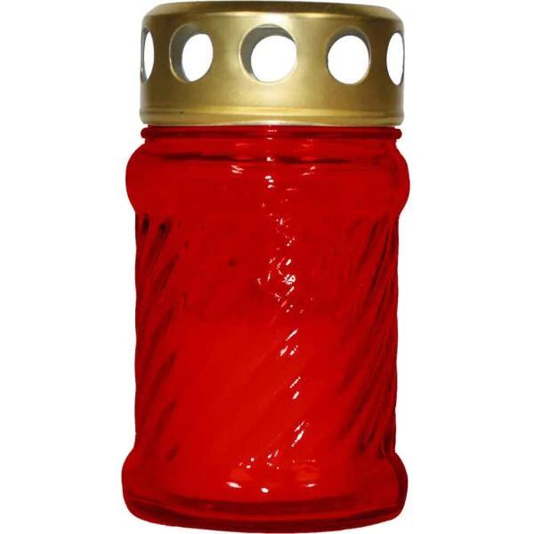 Grafkaars met een brandtijd van 10 uren. De kaars wordt geleverd in een glazen houder die afsluitbaar is dankzij het metalen deksel. Zo blijft de kaars beschermd bij regen. In het deksel zorgen de openingen voor zuurstof zodat de kaars kan blijven branden.