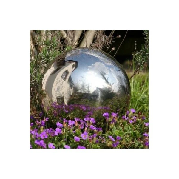 Spiegelbol van gepolijst roestvast staal, ook RVS of inox genoemd blijft kleurvast en verkleurt niet na verloop van tijd.