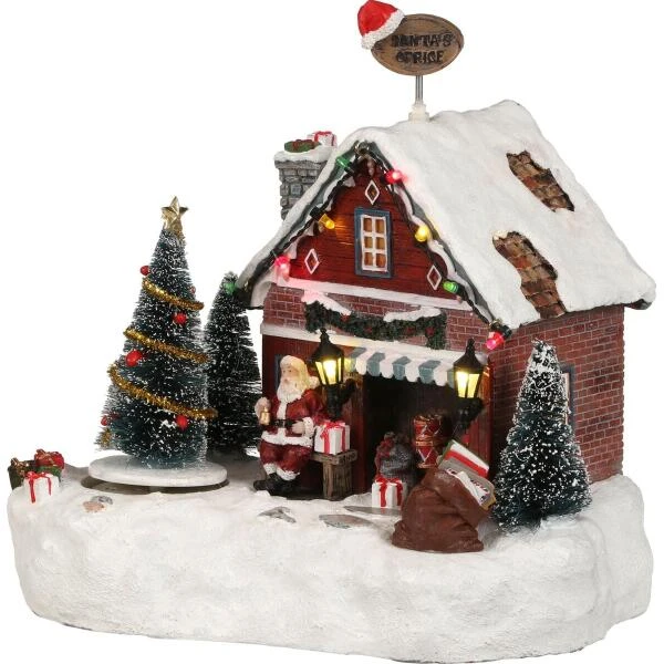Santa’s office is de opslagplaats voor alle geschenken die de kinderen op hun verlanglijstje hebben staan. In dit kantoor wordt alles nauwkeurig bijgehouden zodat ze allemaal het correcte geschenk ontvangen. De kerstman staat buiten nog even van het landschap te genieten voordat hij aan zijn ronde begint.