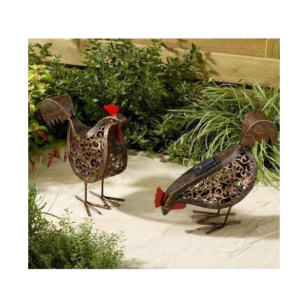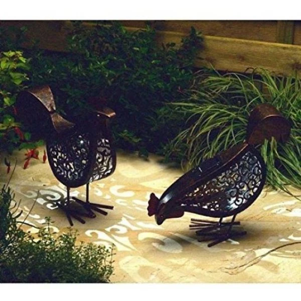 De vintage kippen zullen zeker en vast jouw gazon, border, patio, terras, … verfraaien. Ze zijn vervaardigd uit metaal en de ingebouwde LED-verlichting kan ongeveer tot 8 uur branden wanneer de batterijen volledig opgeladen zijn.