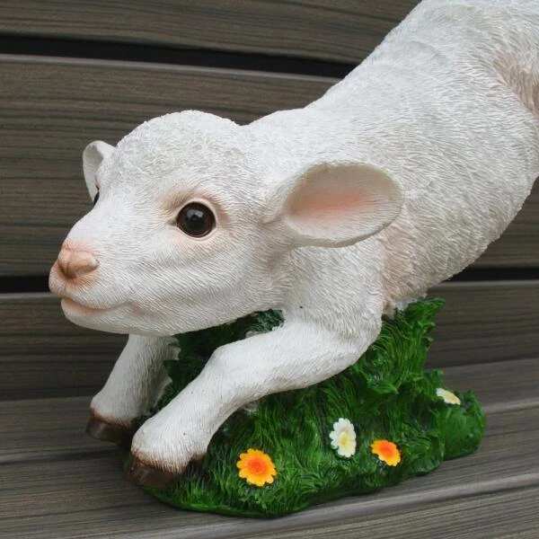 Plaats dit beeld op een centrale plek in het gazon of in een bloemenweide en het zal jong en oud vertederen. Het is heel decoratief en gemaakt uit polyresin, een duurzame kunsthars die bestand is tegen heel wat weersinvloeden. Het beeld kan dus zowel binnen als buiten worden geplaatst. Misschien kan dit lam wel een plekje krijgen op de kinderkamer?