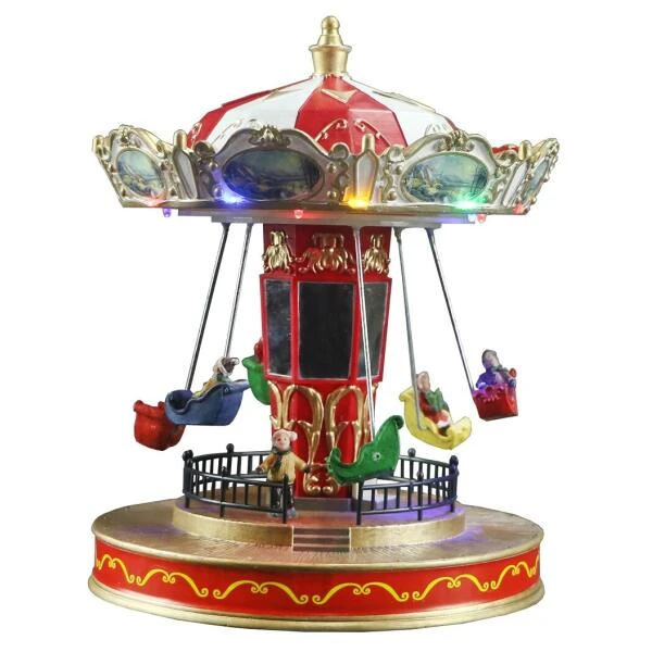 Haal de kerstsfeer meteen in huis en beleef gegarandeerd winterpret met deze authentieke, mooi afgewerkte draaimolen. De kinderen beleven dolle pret op de nostaligische draaimolen en wuiven vanuit het zitje naar hun ouders. Led lichtjes in verschillende kleuren maken het tafereel extra feestelijk. Op de achtergrond speelt een vrolijk kerstliedje.