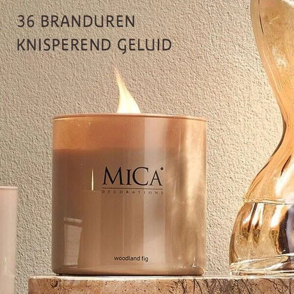 Deze geurkaars uit de collectie van Mica decorations heeft een houtig parfum met zoete accenten, een aroma dat jouw woonkamer extra gezellig en aangenaam om te vertoeven maakt. De luxueuze kaars in glas heeft een houten lont dat een zacht en knisperend geluid geeft, alsof een houtvuur aan het branden is.
