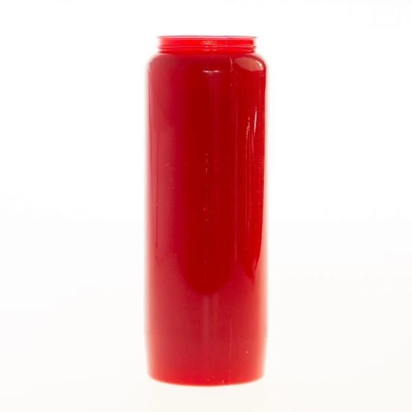 Dit is de grootste versie van de echte noveenkaars en brandt 9 dagen en nachten. Deze witte noveenkaars zit in een rode doorzichtige kunststof houder.