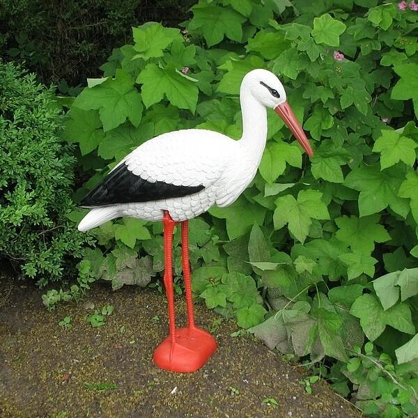 Een levensechte ooievaar op ware grootte voor in de tuin.