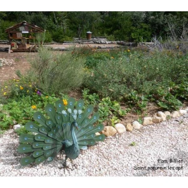 De trotse pauw staat met zijn prachtige pluimstaart te pronken in jouw tuin.