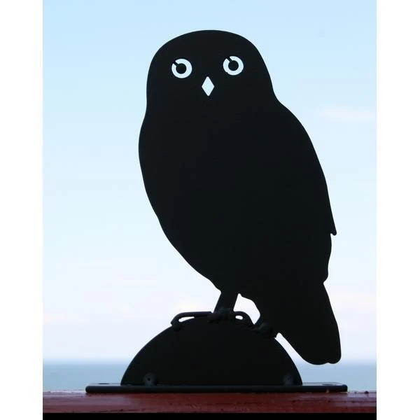 Levensgroot silhouet steenuil. Decoratief en karakteristiek zwart schaduwbeeld van een steenuil. Het silhouet is vervaardigd van metaal bewerkt met een roestwerende, milieuvriendelijke zwarte verf.