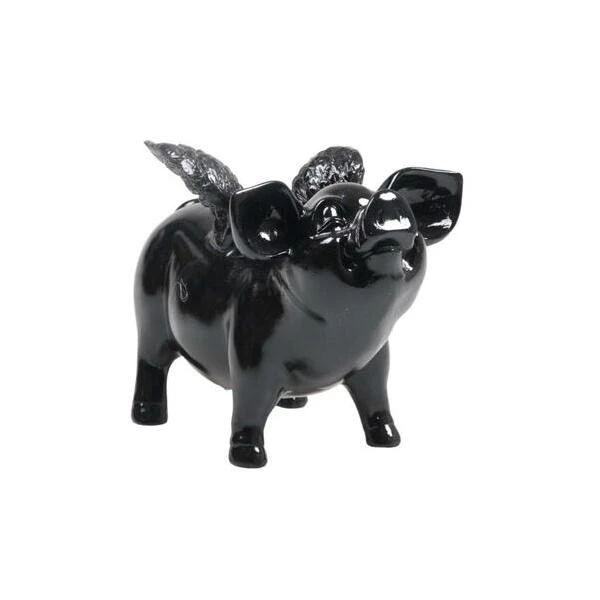 Dit gevleugeld spaarvarken is een opvallende verschijning en springt meteen in het oog. Het varken is gehuld in een glimmend jasje en fleurt het interieur helemaal op.