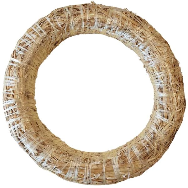 Decoratieve krans uit stro om zelf te versieren. Gebruik de strokrans als ondergrond voor het maken van een adventstkrans, bloemwerk of grafwerk. Dankzij zijn ronde vorm kan de krans makkelijk worden opgehangen aan de voordeur.