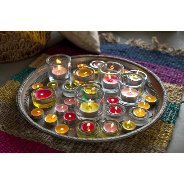Deze zacht geurende theelichtjes zorgen voor een heerlijke geur en creëren een aangename gloed in de woonkamer.