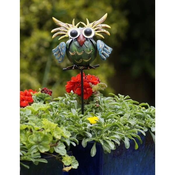 De uil is voorzien van een prikker waarmee je de decoratie zowel in de plantenborder als in een bloembak kan prikken.